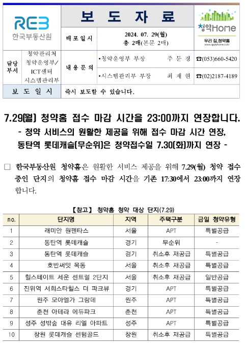 청약에 낙담하고 있는 와중에 청약 시간이 연장되었다는 한국부동산원에서 발표한 보도자료가 나왔습니다.