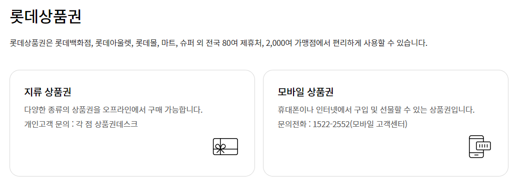 또한, 롯데쇼핑몰과 롯데홈쇼핑에서도 상품권을 사용할 수 있어 온라인 쇼핑도 가능합니다.
