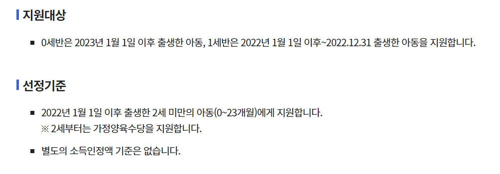 즉, 소득 수준에 따라 차등 지급되지 않으며, 모든 0~1세 영아 가정이 동일한 금액을 받게 되죠.
