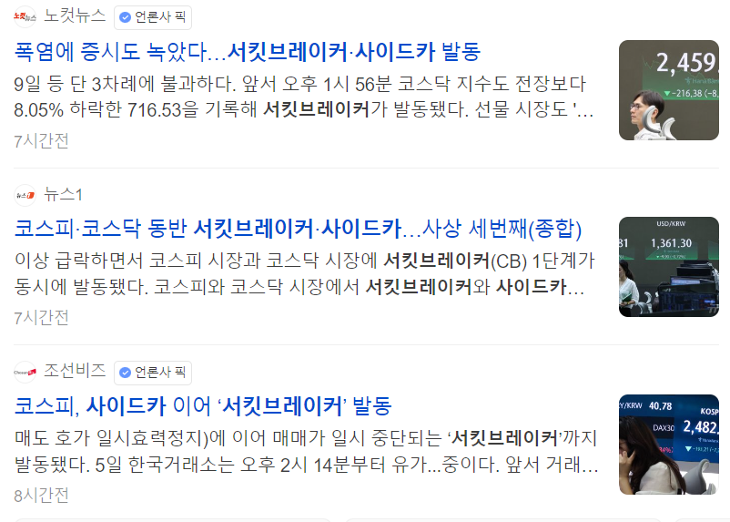 국내 증시에서 서킷브레이커와 사이드카가 발동된 것은 코로나 19 이후 4년 만에 처음인데요.