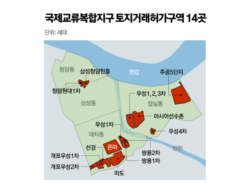 반면, 투자 수요가 높은 일부 재건축 단지(잠실주공5단지, 아시아선수촌 등) 14곳은 여전히 토지거래허가구역으로 남아 있습니다.