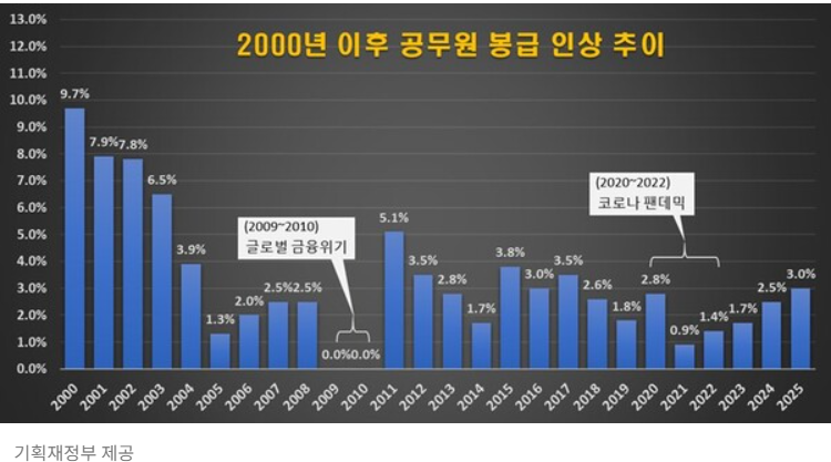 2025년 공무원 봉급 인상률