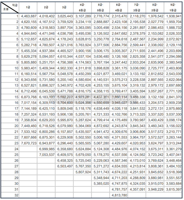 2025년 공무원 봉급표