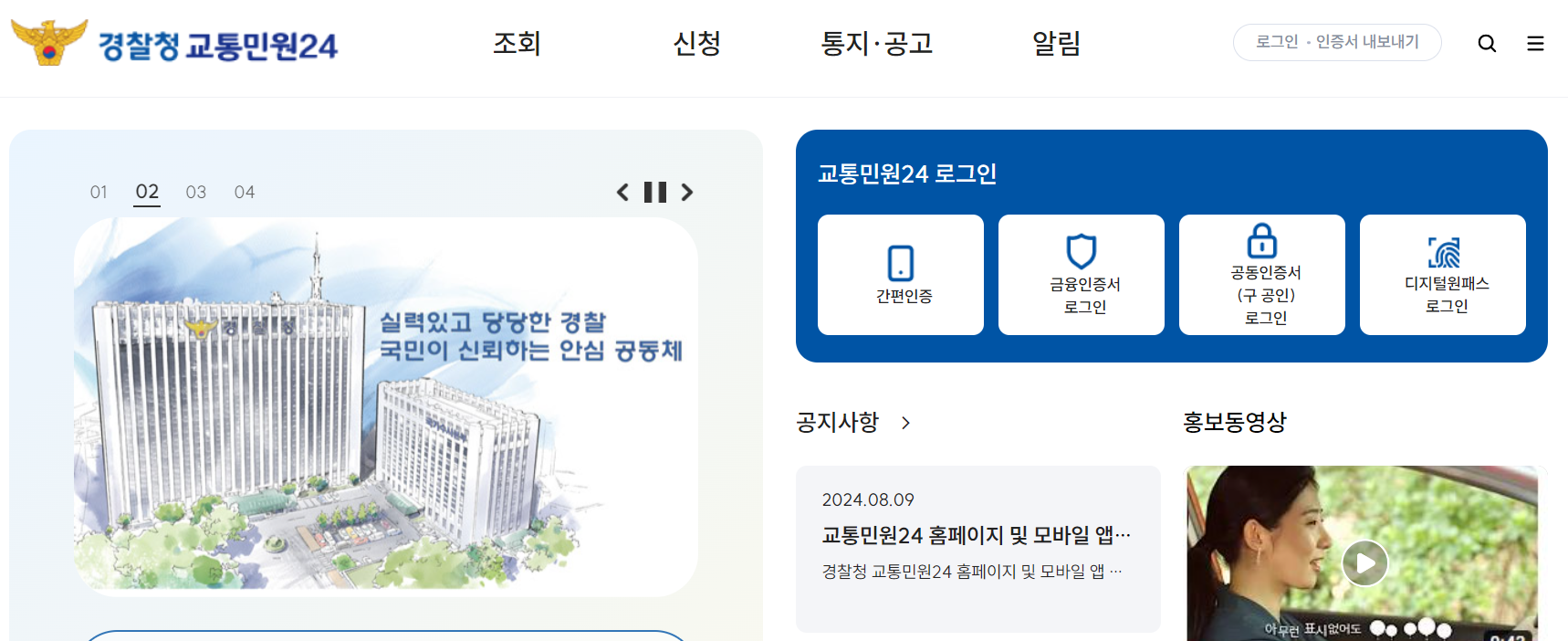 접속하기: 경찰청의 교통민원24(이파인) 사이트에 접속합니다.