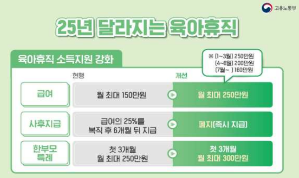 2025년부터 육아휴직 급여가 대폭 인상되었습니다.