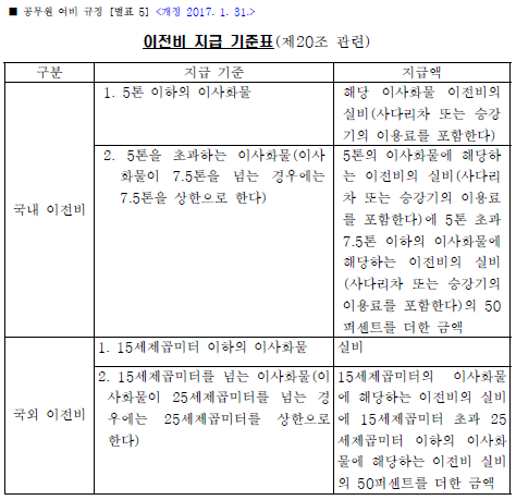 이전비 및 가족여비